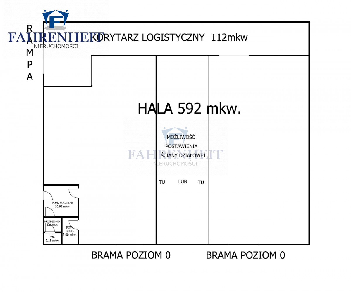 - korytarz komunikacyjny z rampy do wewnętrznych bram co umożliwia podzielenie na hali na 2 części